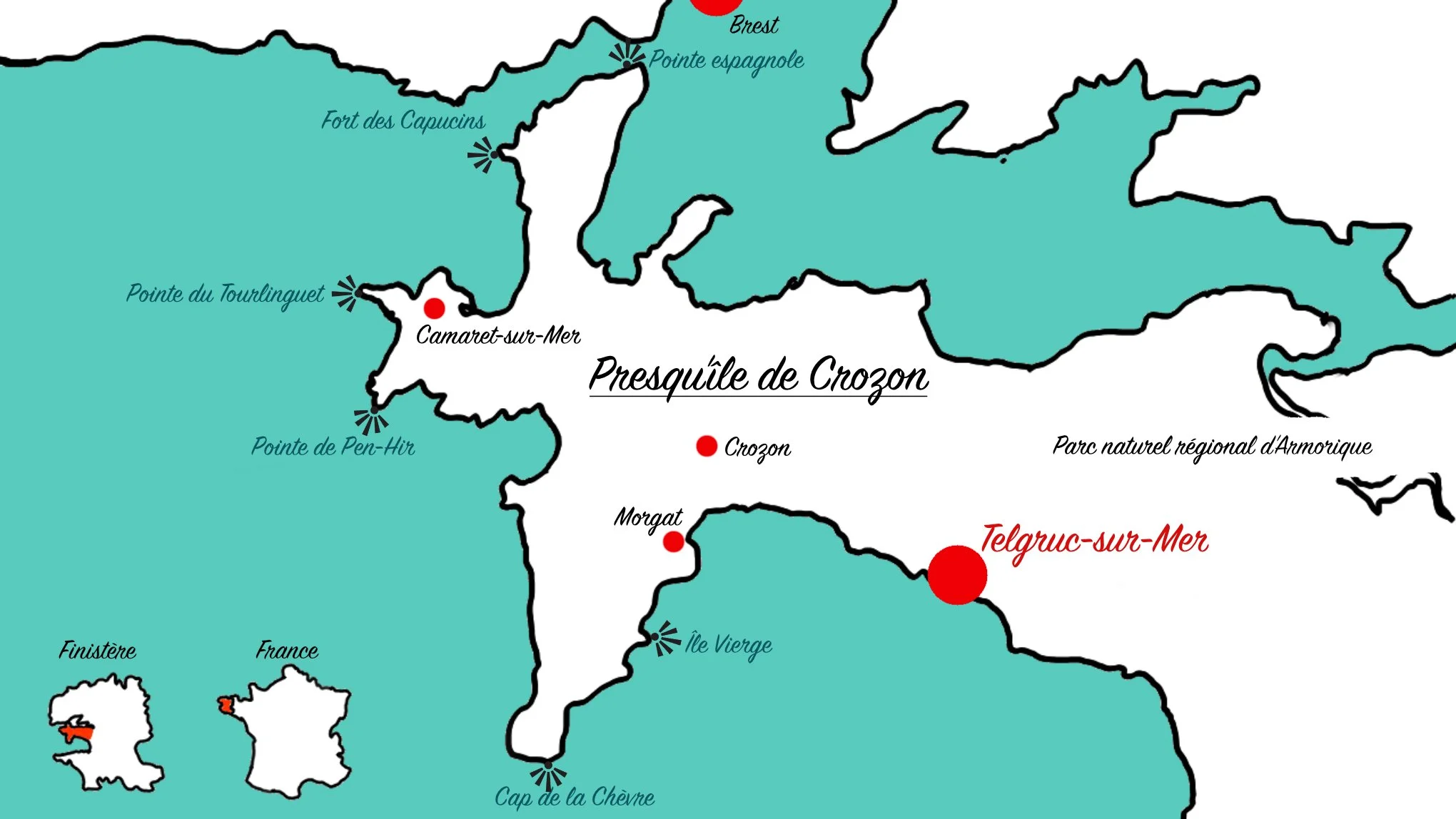 Située dans le département du Finistère (région Bretagne) et placée dans le «Parc Naturel Régional d’Armonique», notre maison se trouve dans la Commune de Telgruc-sur-Mer. À l'entrée de la Presqu'île de Crozon et à environ 45minutes au Sud de Brest.
